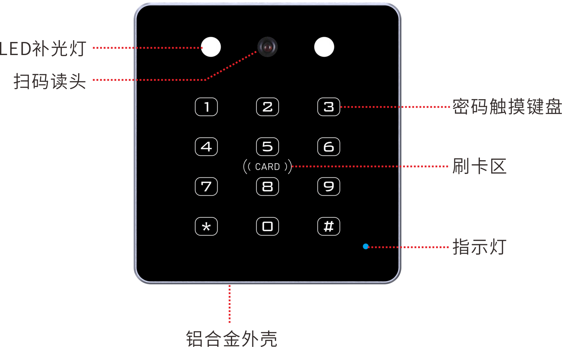 | 读卡提示 | 声音提示,同时刷卡指示灯也会发生颜色变化 |